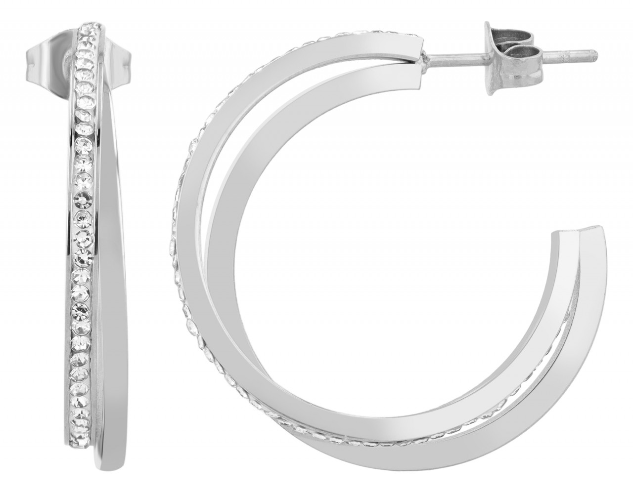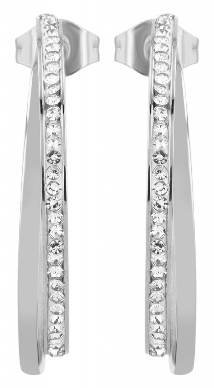 Este brinco de meia argola com um prático fecho de encaixe impressiona pela sua versatilidade e elegância cintilante. Uma metade dos brincos de argola (diâmetro 21 mm) é totalmente engastada com pedras brilhantes similie, enquanto o outro lado ostenta uma sofisticação simples. Um verdadeiro efeito dois-em-um, combinado com a escolha de cores – prata nobre ou ouro brilhante – este acessório irá chamar a atenção em qualquer ocasião. A peça de joalharia perfeita para surpreender uma pessoa querida como presente, ou apenas por diversão, e trazer um brilho aos seus olhos.