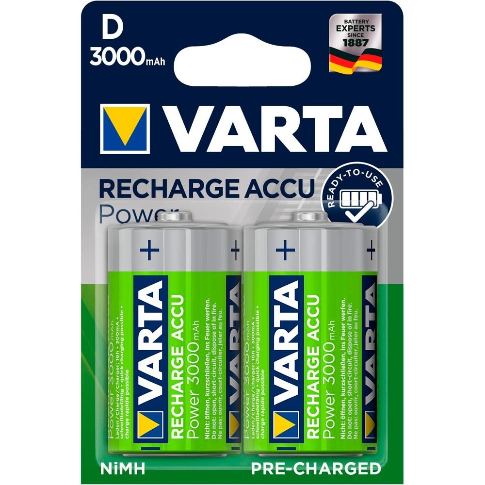 Pilhas Varta Recarregáveis D. Embalagem de 2 unidades.
