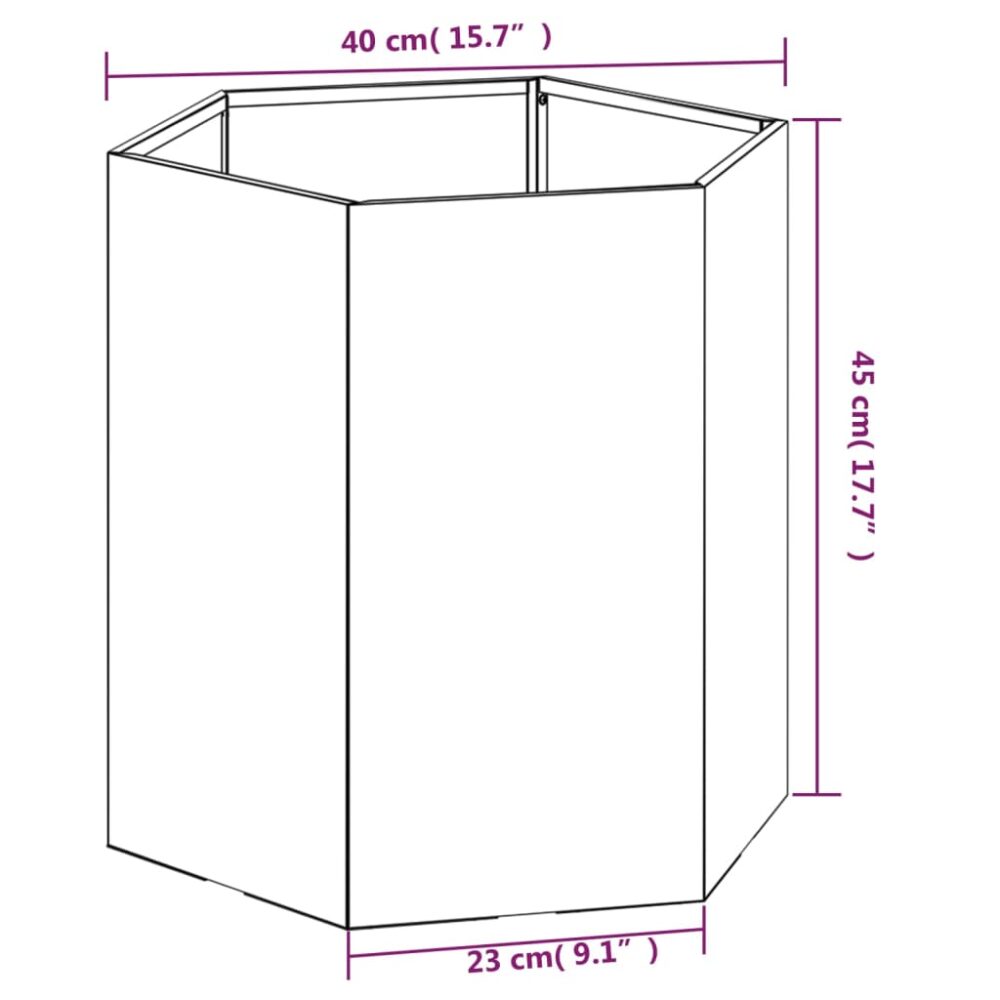 Esta floreira será ótima para os entusiastas de DIY decorarem o seu jardim, varanda ou pátio. Material durável: aço corten. É um material anticorrosivo, pela sua própria natureza. Desenvolve uma camada de proteção enferrujada contra a corrosão quando exposto pela primeira vez às condições atmosféricas. Logo, não é necessário pintar. Isto pode ajudá-lo a poupar custos de manutenção e reparação. A distinta cor castanha no aço corten será, certamente, um destaque. Por fim, o aço corten é excecionalmente durável e resistirá ao desgaste causado pelo tempo.Estrutura robusta: a estrutura de aço da floreira assegura resistência e estabilidade.Função decorativa: a floreira pode conter as suas plantas ou flores favoritas, funcionando portanto como uma decoração ideal para o seu jardim. Útil saber:Este produto ainda não está enferrujado e terá uma cor de metal normal quando o receber, mas a ferrugem irá desenvolver-se com o tempo. Pode acelerar o processo de enferrujamento pulverizando-o com água salgada e sabão. Para manter a sua roupa sem manchas, evite o contacto com a camada de ferrugem em desenvolvimento.De forma a tornar a montagem o mais fácil possível, cada produto é entregue com um manual.