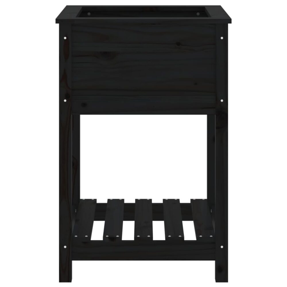 Vaso/floreira com prateleira 54x54x81 cm pinho maciço preto - PORTES GRÁTIS