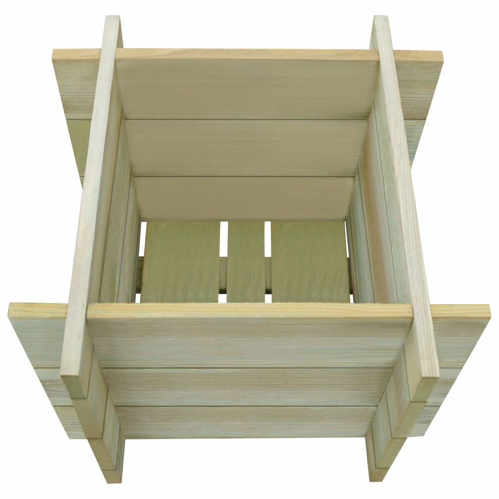 O vaso/floreira tem um design simples e irá adicionar um toque de encanto natural ao seu espaço ao ar livre. É feita de madeira de pinho impregnada, o que torna a caixa para plantar resistente ao clima e ao apodrecimento, sendo por isso muito adequada para uso externo. A montagem é muito fácil.
