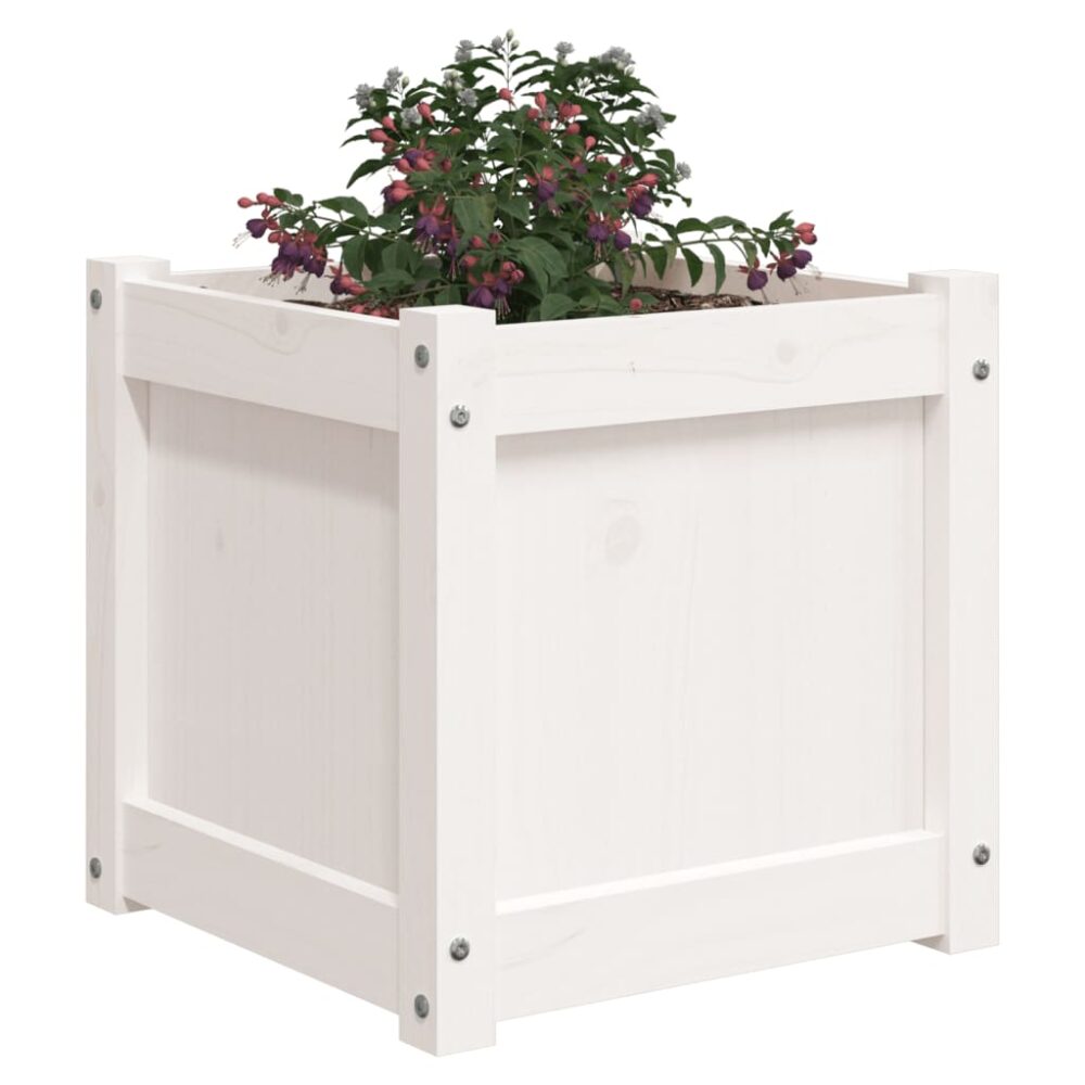 Vaso/floreira de jardim 40x40x40 cm madeira pinho maciça branco - PORTES GRÁTIS