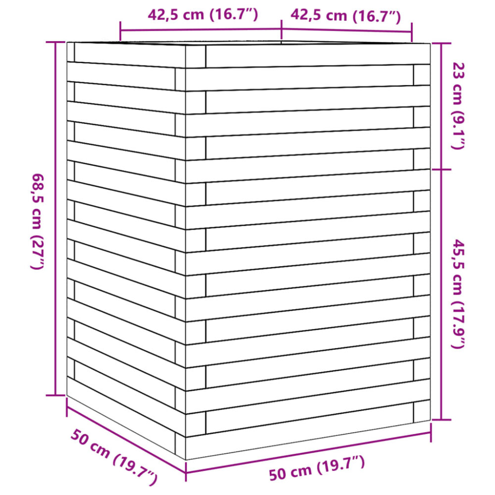 Vaso/floreira de jardim 50x50x68,5 cm pinho maciço branco - PORTES GRÁTIS