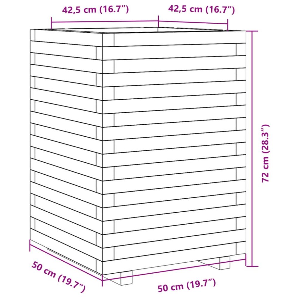 Vaso/floreira de jardim 50x50x72 cm madeira de pinho impregnada - PORTES GRÁTIS