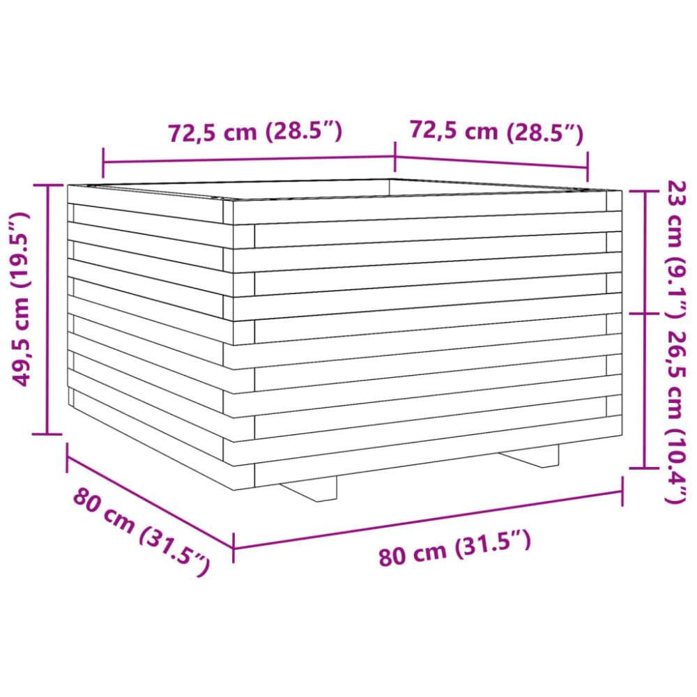 Vaso/floreira de jardim 80x80x49,5 cm pinho maciço castanho mel - PORTES GRÁTIS
