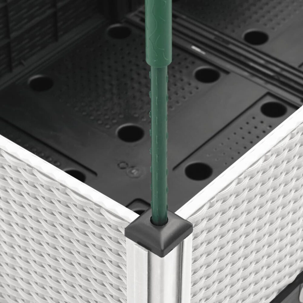 Este vaso/floreira de jardim com treliça é uma excelente escolha para as plantas trepadeiras do seu jardim, pátio ou terraço. Material durável: o polipropileno é um plástico popular e é, ainda, um dos materiais mais usados no mobiliário de exterior. É leve, robusto e resistente ao impacto.Capacidade generosa: o vaso de exterior oferece muito espaço para o cultivo de todos os seus vegetais, flores e outras plantas.Design prático: a camada inferior ideal ajuda a reter a humidade e permite uma drenagem fácil. Além disso, a treliça integrada oferece um excelente apoio para cultivar plantas trepadeiras, tais como tomate, ervilhas e rosas.Bonito aspeto de vime: o vaso de pátio foi concebido com um aspeto de vime, oferecendo um charme elegante ao seu espaço habitacional.Design elevado: o design elevado desta floreira protege as suas plantas de ervas daninhas e pragas.