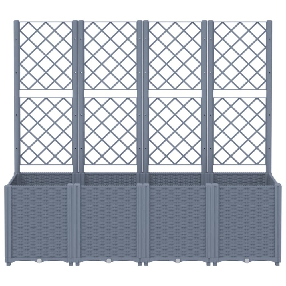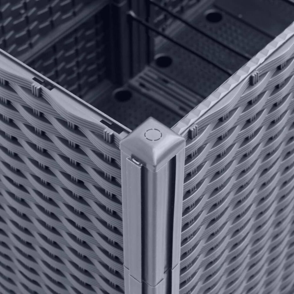 Este vaso/floreira de jardim com treliça é uma excelente escolha para as plantas trepadeiras do seu jardim, pátio ou terraço. Material durável: o polipropileno é um plástico popular e é, ainda, um dos materiais mais usados no mobiliário de exterior. É leve, robusto e resistente ao impacto.Capacidade generosa: o vaso de exterior oferece muito espaço para o cultivo de todos os seus vegetais, flores e outras plantas.Design prático: a camada inferior ideal ajuda a reter a humidade e permite uma drenagem fácil. Além disso, a treliça integrada oferece um excelente apoio para cultivar plantas trepadeiras, tais como tomate, ervilhas e rosas.Design modular: esta floreira é composta por 4 compartimentos que podem ser combinados livremente de acordo com as suas necessidades.Bonito aspeto de vime: o vaso de pátio foi concebido com um aspeto de vime, oferecendo um charme elegante ao seu espaço habitacional.