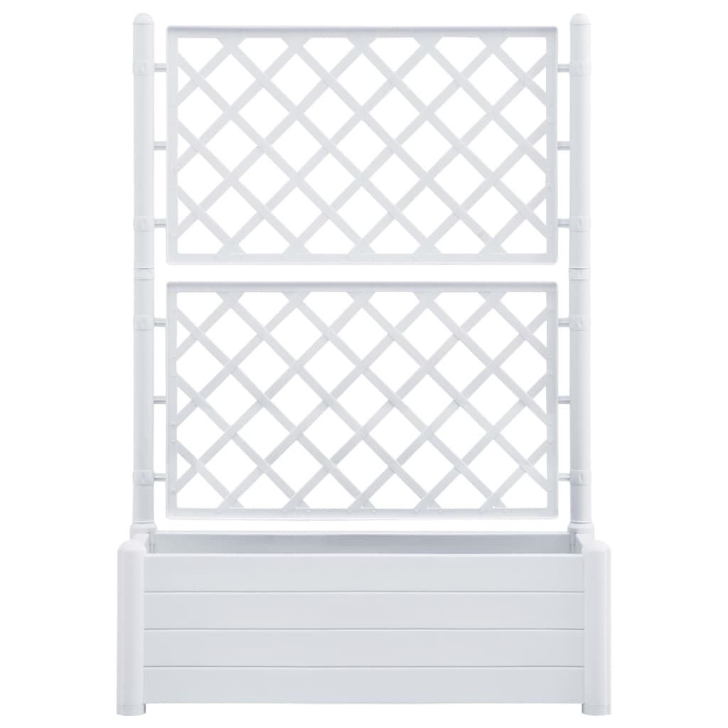 Feita em PP resistente às intempéries, a floreira é leve e adequada para utilização ao ar livre. Possui uma grande caixa com 90 L de capacidade, que lhe permite acomodar um número considerável de plantas e flores verdes. A treliça integrada oferece um ótimo suporte para plantas trepadeiras e quando estiver coberta com estas plantas criará também um efeito decorativo impressionante.