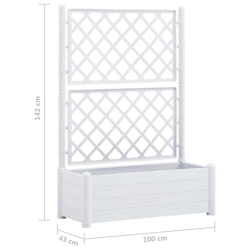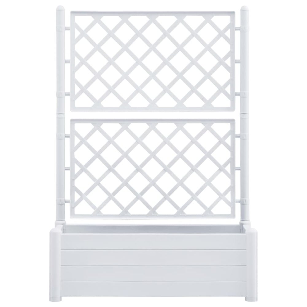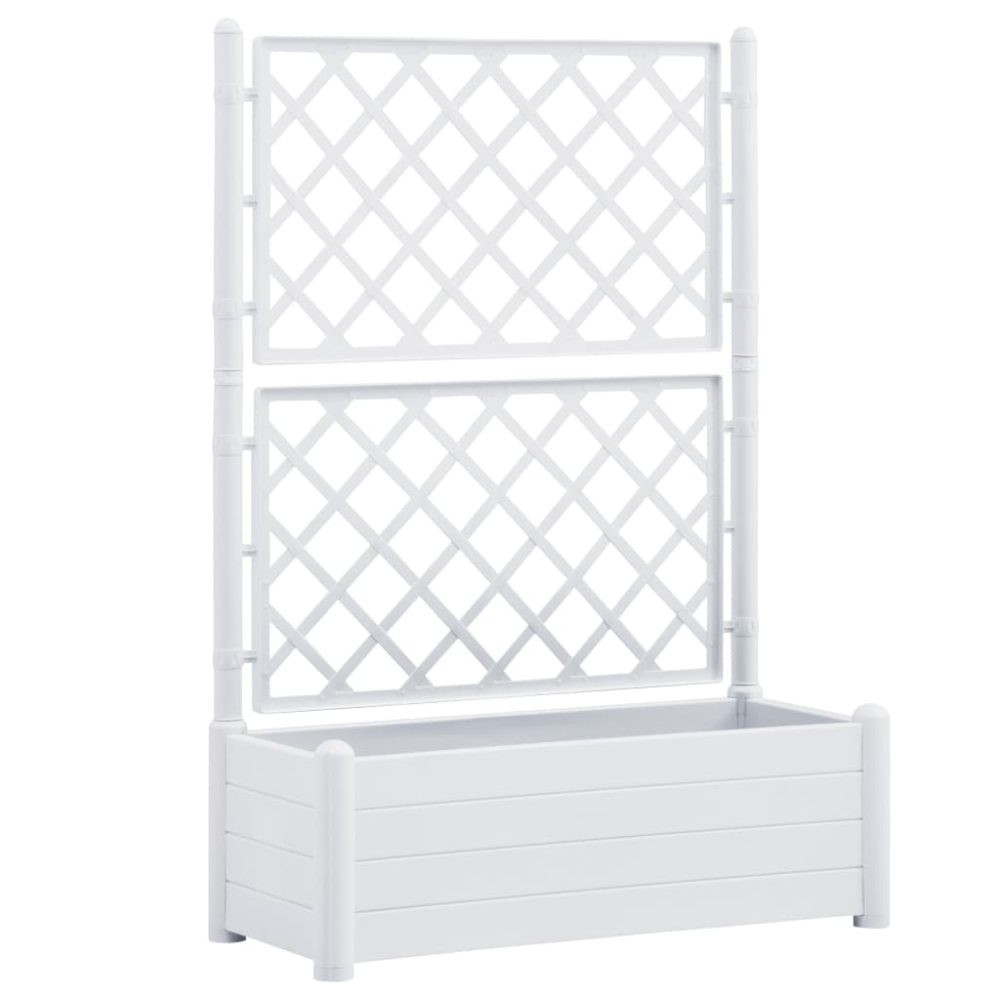 Feita em PP resistente às intempéries, a floreira é leve e adequada para utilização ao ar livre. Possui uma grande caixa com 90 L de capacidade, que lhe permite acomodar um número considerável de plantas e flores verdes. A treliça integrada oferece um ótimo suporte para plantas trepadeiras e quando estiver coberta com estas plantas criará também um efeito decorativo impressionante.
