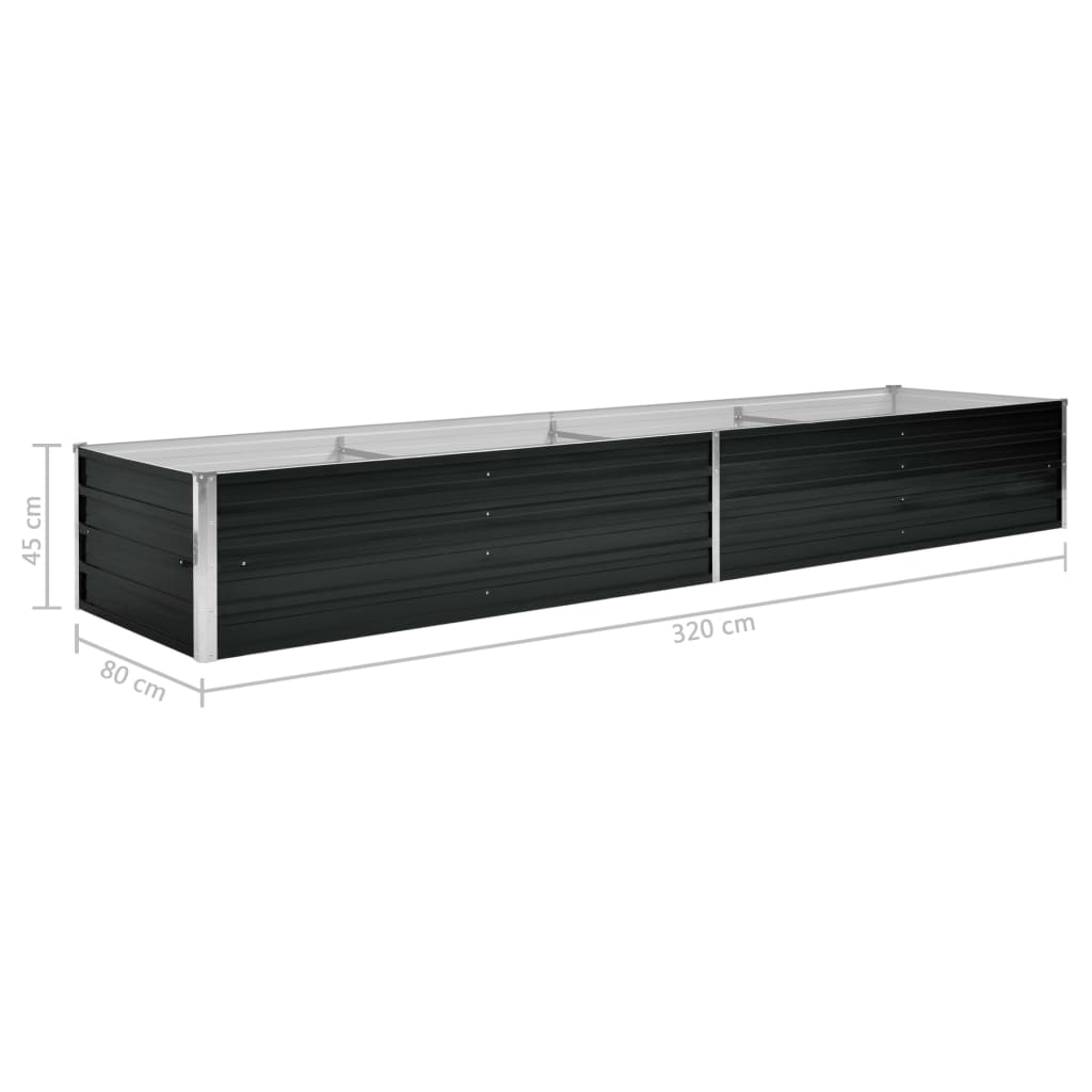 A floreira é suficientemente funda e larga para conter uma grande quantidade de solo e fornecer um amplo espaço para as suas plantas, vegetais, ervas e flores. Feita em aço galvanizado robusto, a floreira é resistente às intempéries, sendo portanto muito prática para utilização no exterior. A floreira requer montagem.