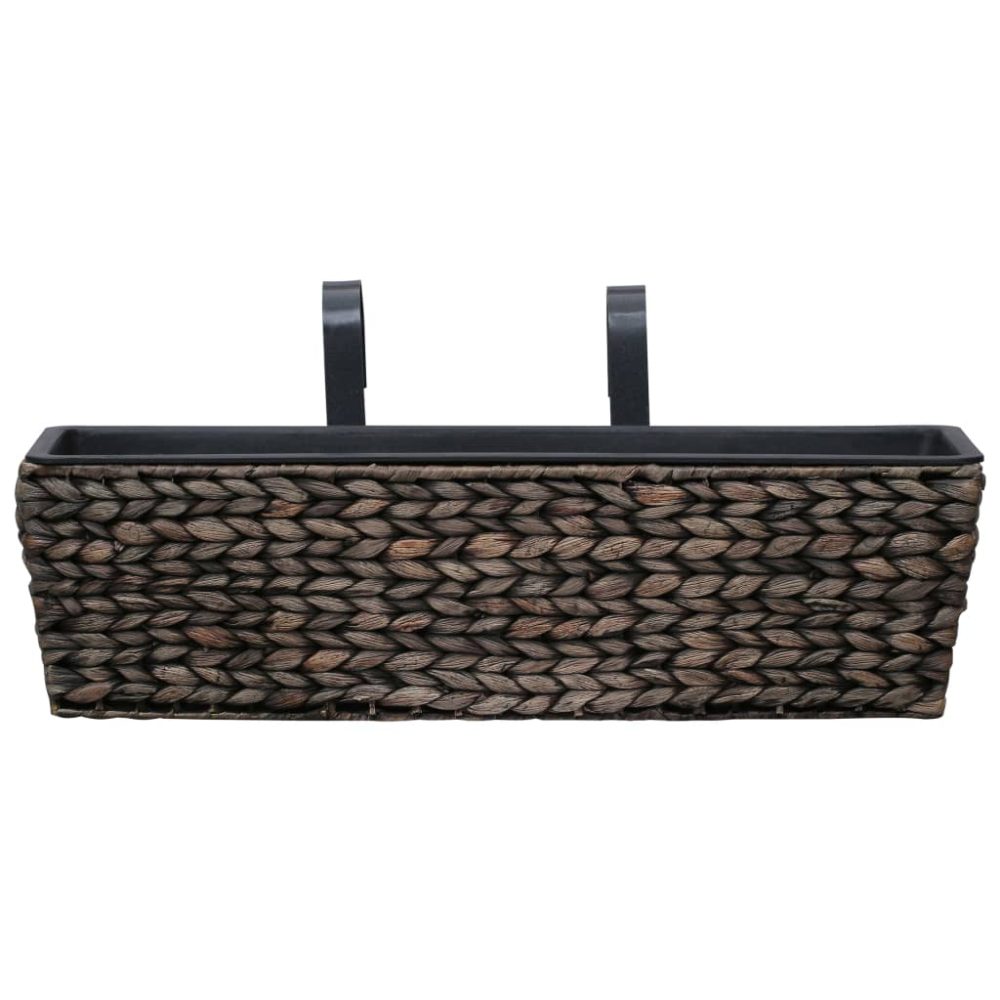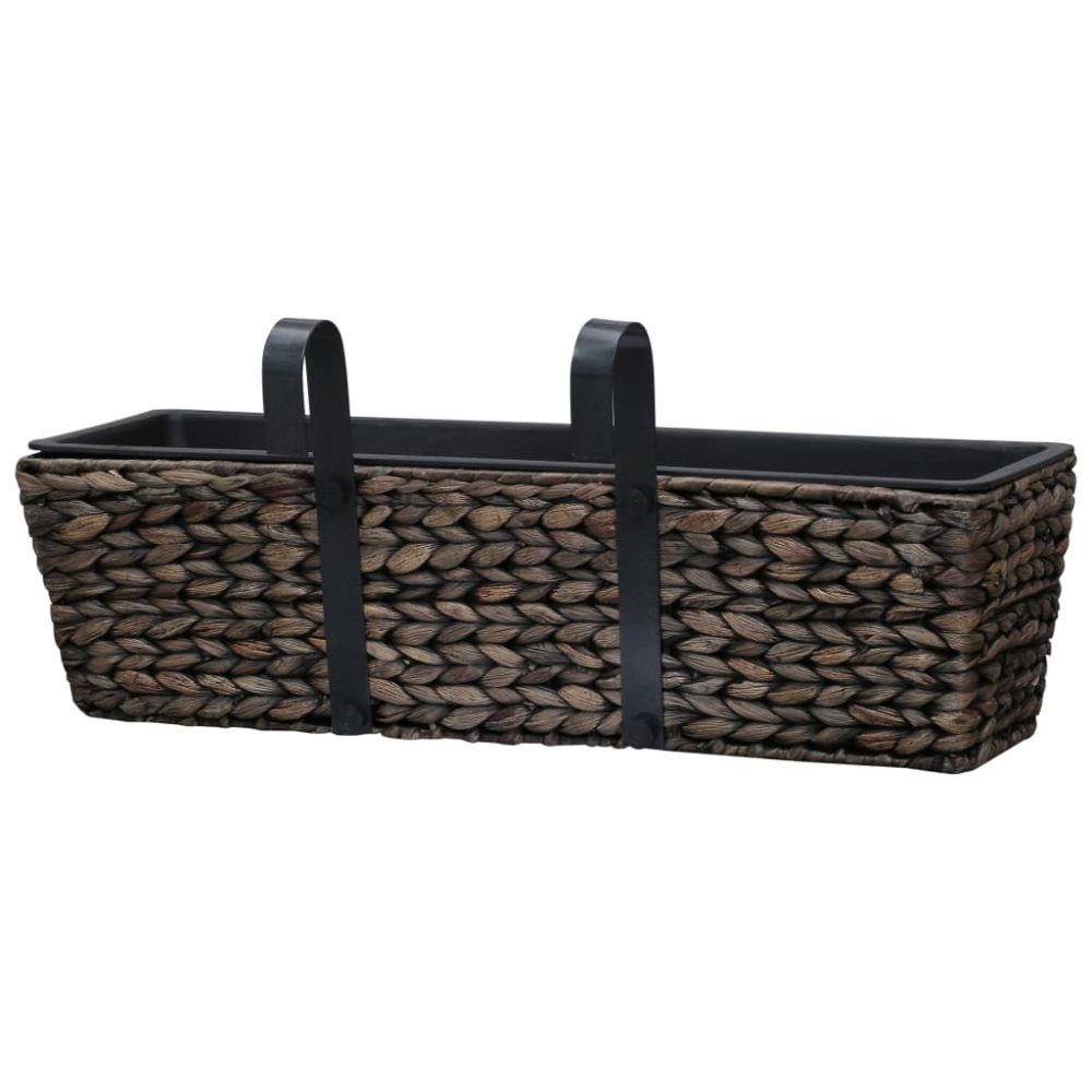 Feitas em jacinto de água altamente durável, estas floreiras serão um complemento muito atraente para o seu espaço ao ar livre. Caberão na maioria dos seus parapeitos ou nas grades da varanda. A sua estrutura de tecelagem apertada e os dois suportes de metal produzem um acabamento suave e proporcionam uma ótima estabilidade. Equipado com 2 vasos de zinco no interior, este conjunto de floreiras assegurará uma longa vida útil. Todos os tipos de plantas e flores verdes vivas podem ser colocadas nos vasos.