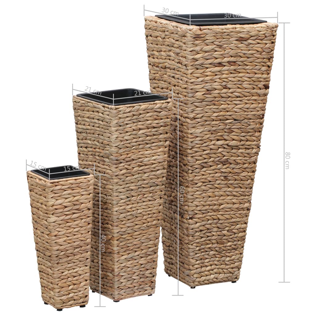 Plante e exponha flores ou plantas no nosso conjunto de vasos em jacinto de água com um estilo rústico! Os 3 vasos possuem diferentes tamanhos que lhe permitem ser criativo, bem como dispô-los como quiser!