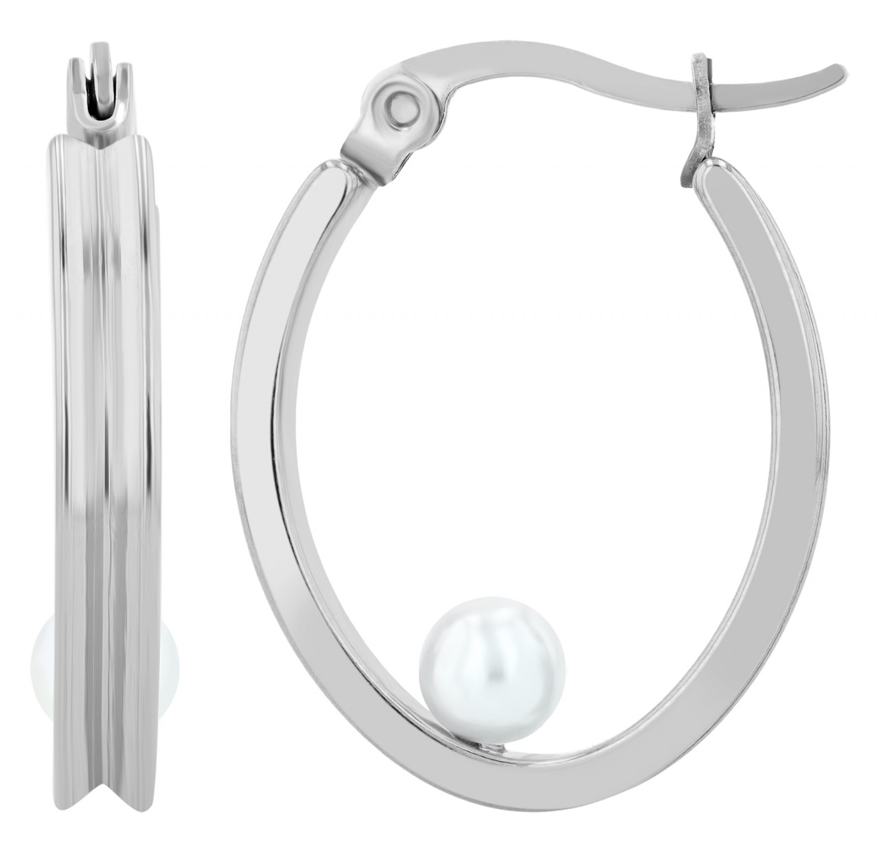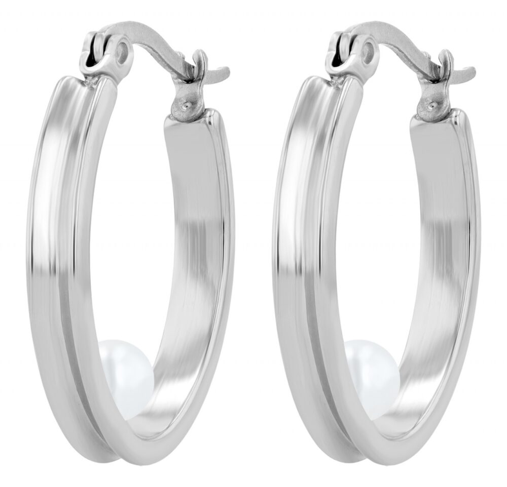 Um acessório perfeito para qualquer ocasião é o brinco de argola oval com um fecho prático, que impressiona pela sua beleza simples e pelos seus pormenores requintados. Uma pérola incrustada no centro da argola confere um toque de sofisticação e o rebordo curvo para dentro (côncavo) realça o aspeto elegante. O fecho prático torna-a confortável de usar e, com as dimensões de 22 x 20 mm, esta peça de joalharia é a companheira ideal, seja para o dia a dia ou para ocasiões especiais.
