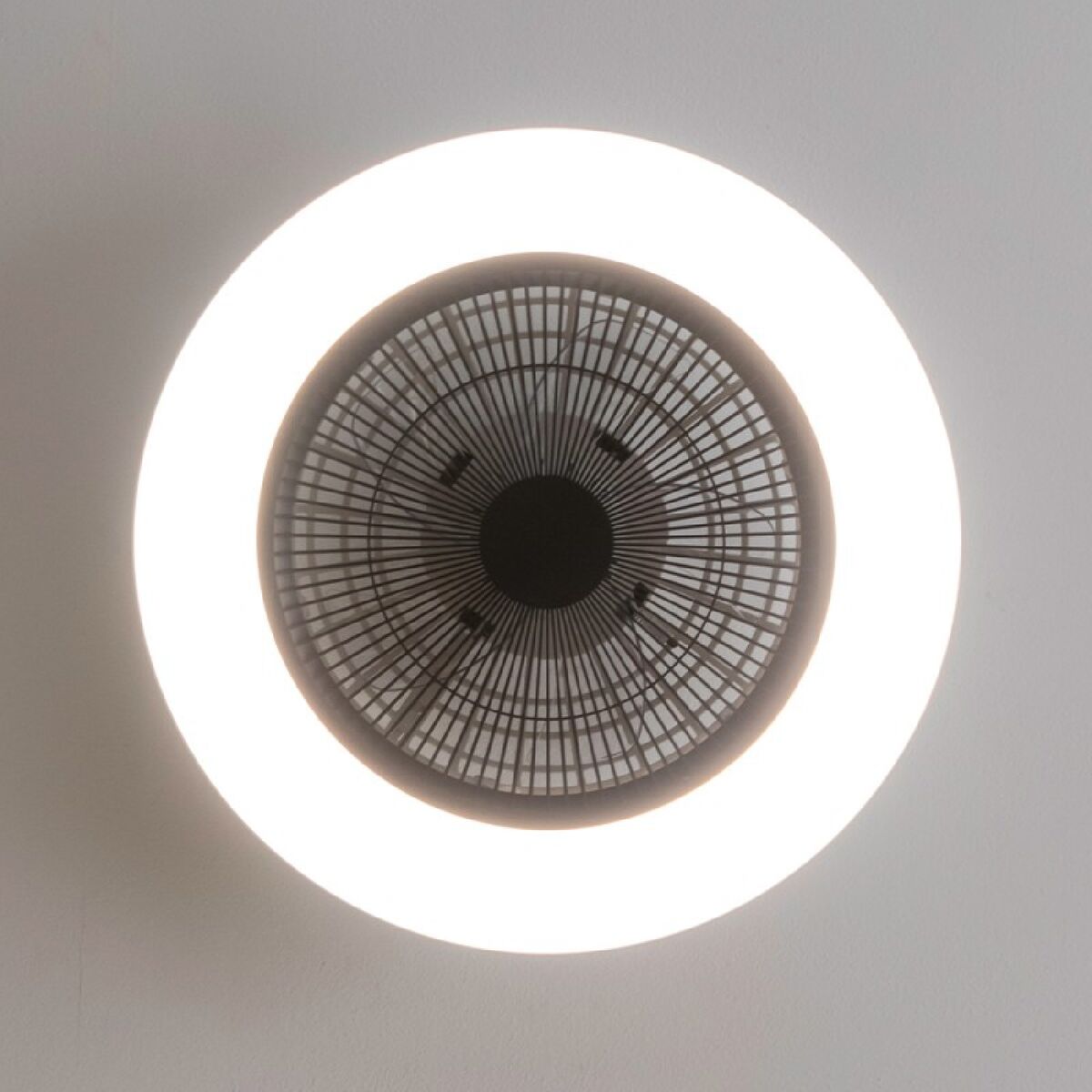 Ventoinha de teto de design com motor DC, com uma potência de 20 W e lâmpada LED de 40 W, com 5 pás de 20 polegadas, controlo remoto, 3 velocidades, 3 tonalidades de luz disponíveis, temporizador e modo Inverno/Verão.