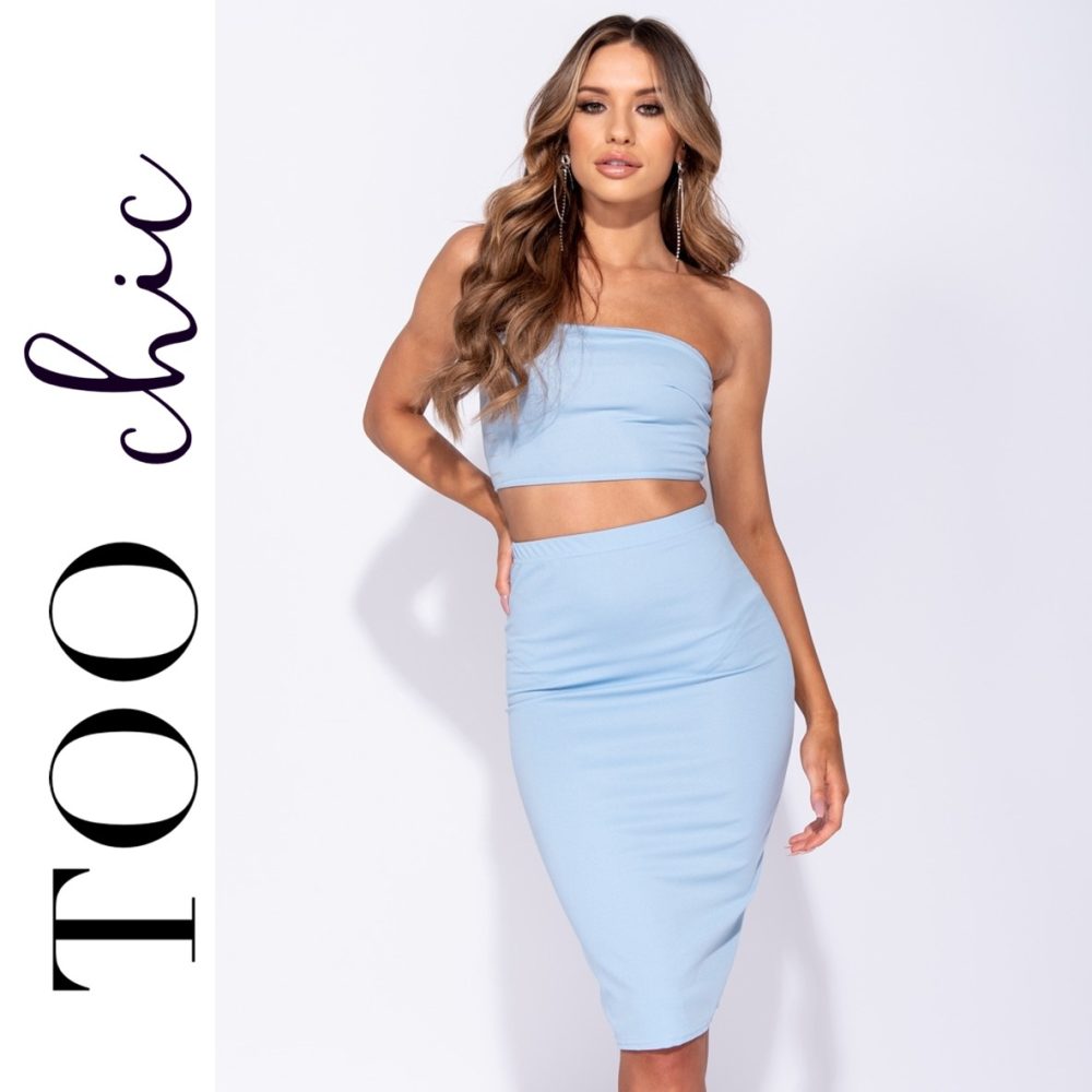 Conjunto top e saia de estiramento com cintura alta