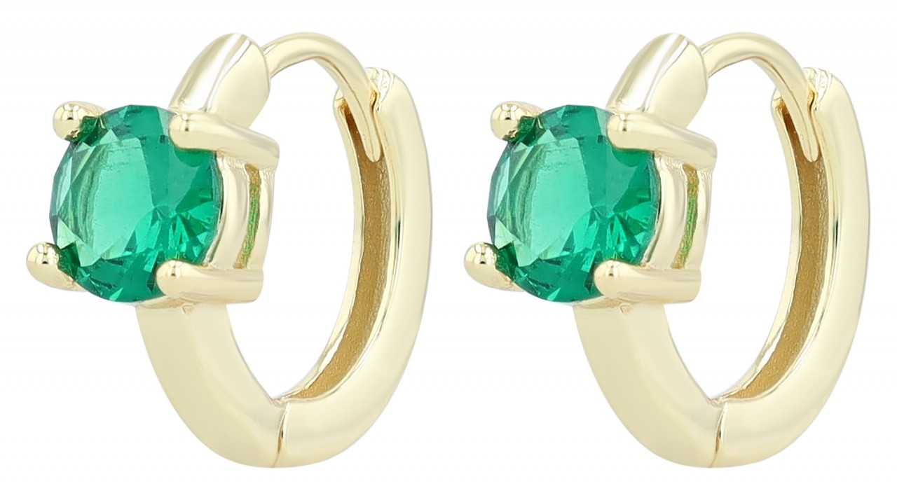 Argolas "Victoria" Douradas em Prata de Lei 925 Banhadas a Ródio com Zircônia Verde 0607