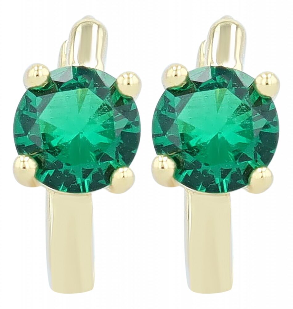 Argolas "Victoria" Douradas em Prata de Lei 925 Banhadas a Ródio com Zircônia Verde 0607