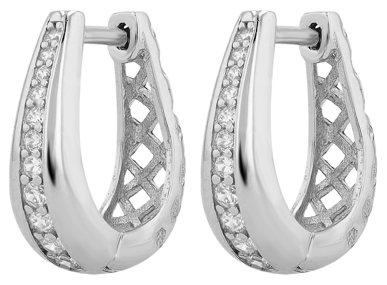 Vivien – elegância intemporal com brilho cintilante Fabricado em prata genuína 925, este brinco de argola com dobradiças está disponível em prata com banho de ródio ou numa versão sofisticada com banho de ouro, o que o torna perfeito para qualquer estilo. Os brincos de argola são dotados de um toque de luxo e de um brilho impressionante graças às 11 zircónias radiantes alinhadas ao centro na parte da frente. A forma ligeiramente oval, medindo 14,5 x 5 x 2,5 mm, pode ser usada em qualquer ocasião, não parece intrusiva e acrescenta um toque de elegância ao seu visual. O popular fecho russo facilita a colocação e a retirada e garante uma fixação segura.