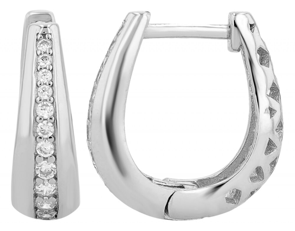 Vivien – elegância intemporal com brilho cintilante Fabricado em prata genuína 925, este brinco de argola com dobradiças está disponível em prata com banho de ródio ou numa versão sofisticada com banho de ouro, o que o torna perfeito para qualquer estilo. Os brincos de argola são dotados de um toque de luxo e de um brilho impressionante graças às 11 zircónias radiantes alinhadas ao centro na parte da frente. A forma ligeiramente oval, medindo 14,5 x 5 x 2,5 mm, pode ser usada em qualquer ocasião, não parece intrusiva e acrescenta um toque de elegância ao seu visual. O popular fecho russo facilita a colocação e a retirada e garante uma fixação segura.