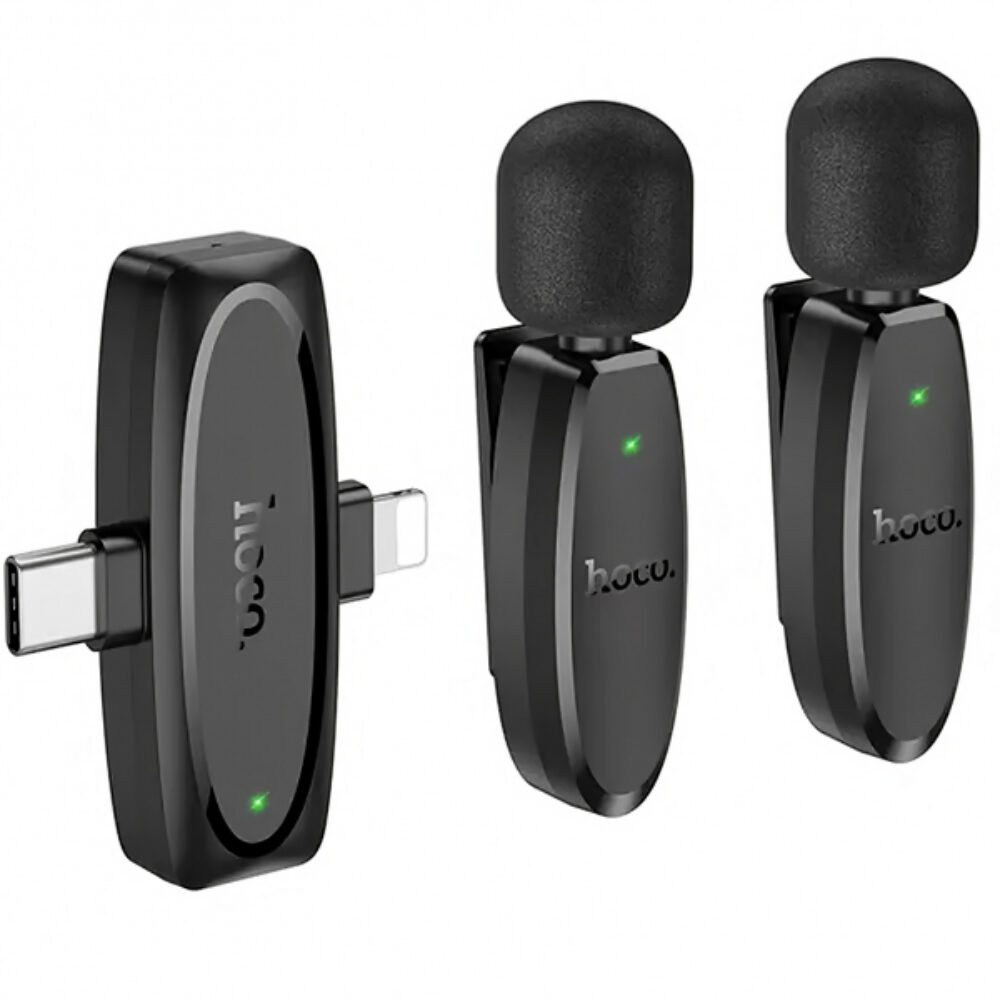 Microfone sem fios Hoco L15, USB-C / Lightning, embalagem com 2 unidades, preto
