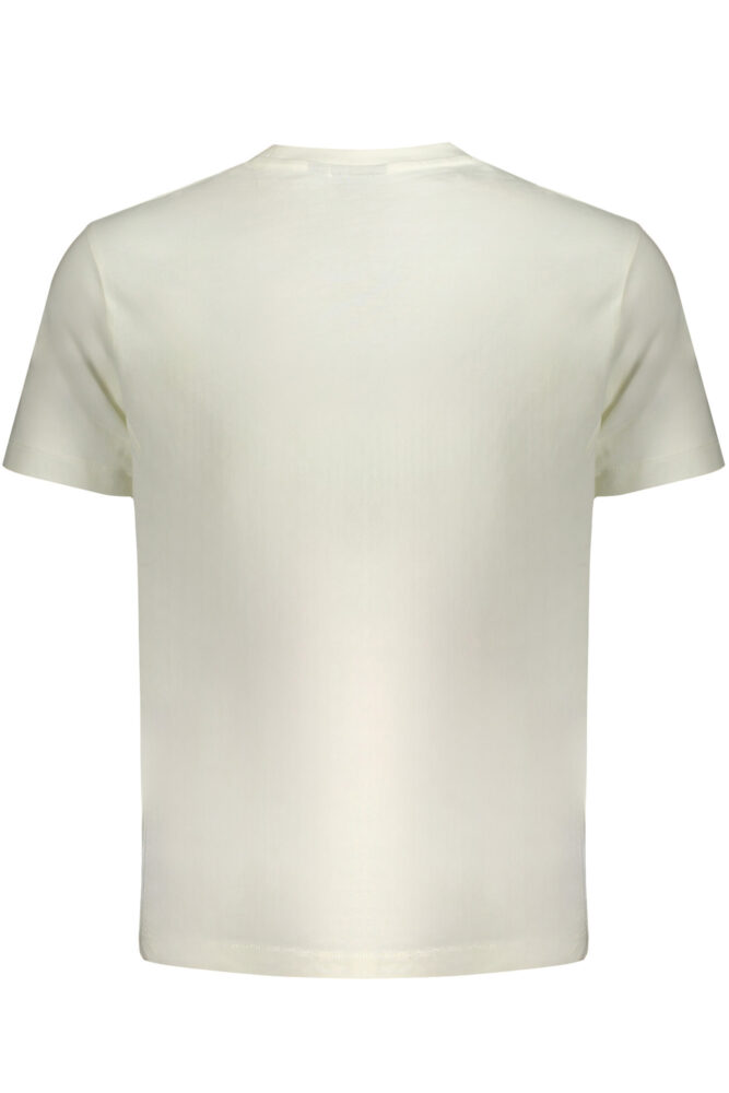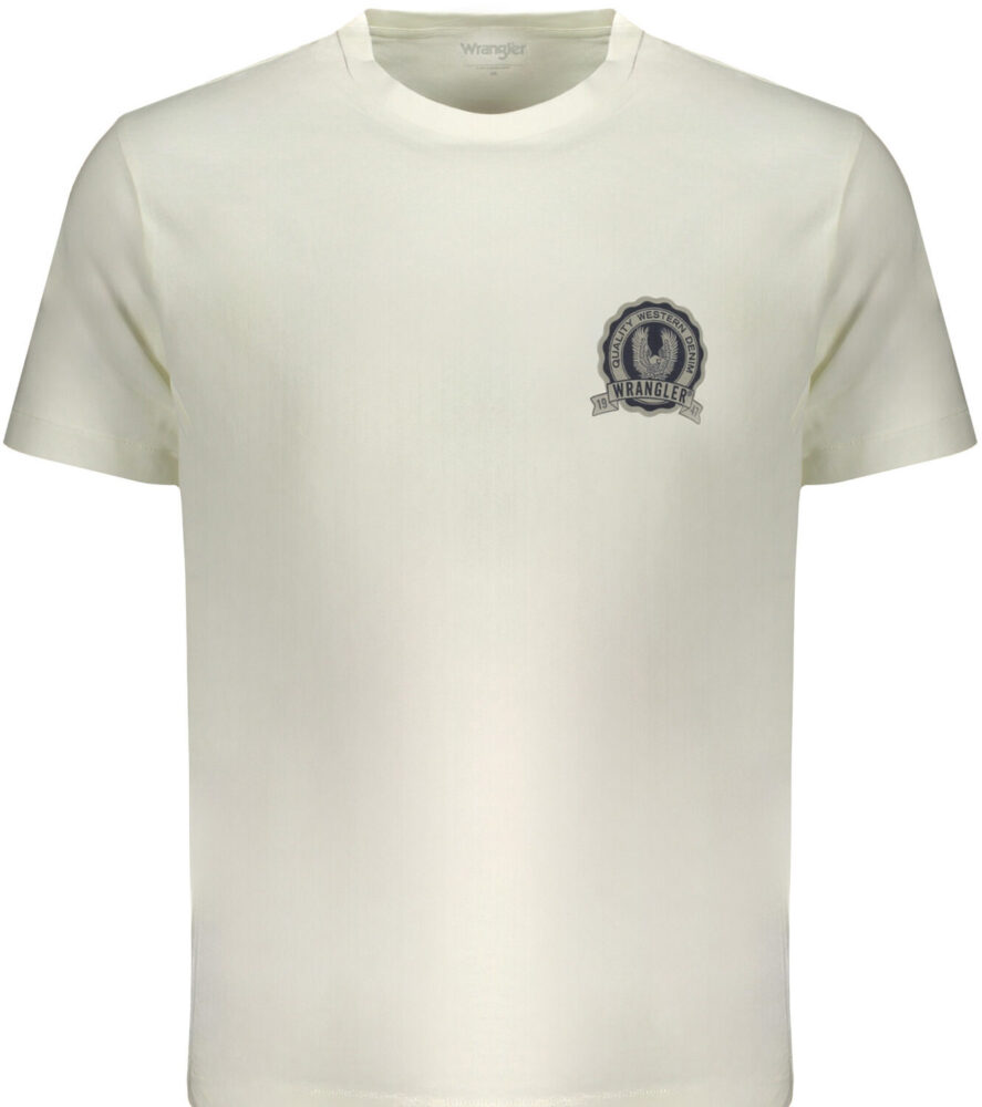 T-shirt gráfica, gola redonda, logótipo estampado.
