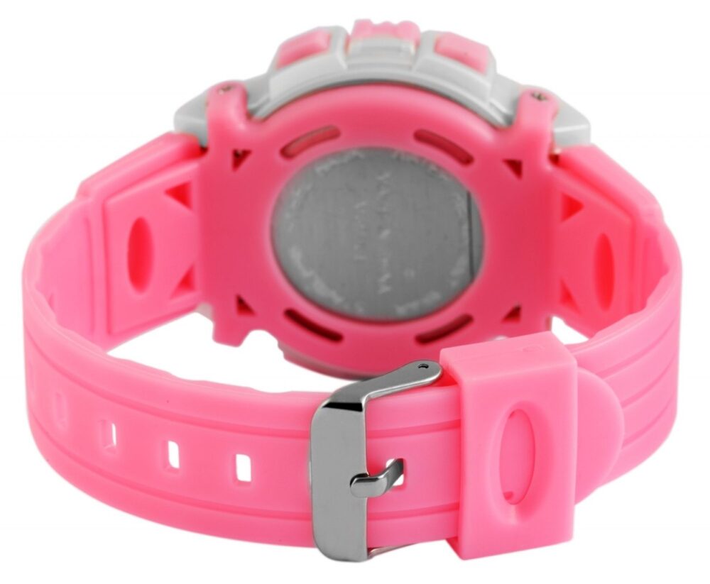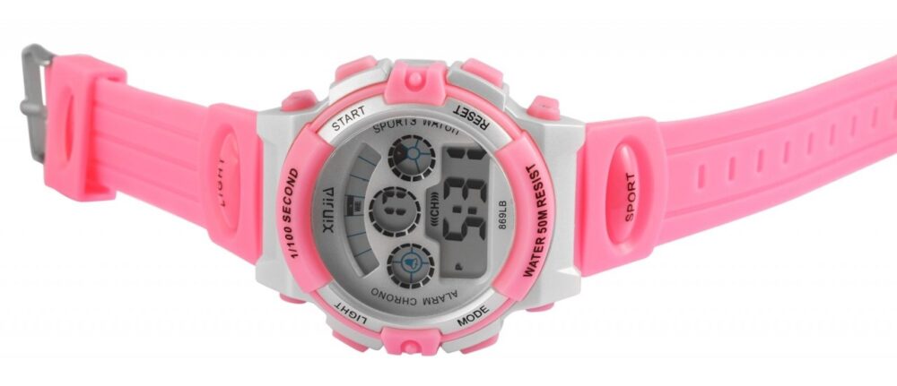 O relógio de pulso digital da marca Xinjia apresenta um movimento de quartzo de alta qualidade. A pulseira de silicone tem 23 mm de largura nas hastes e pode ser aberta e fechada com uma fivela de aço inoxidável prateada. O comprimento total do relógio é de 24,5 cm. A caixa de plástico tem um diâmetro de 44 mm e uma altura de 17 mm. É particularmente robusto contra choques e vibrações. A parte traseira da caixa é feita de aço inoxidável e é fixada à caixa com quatro parafusos de aço inoxidável. O relógio tem uma resistência à água de 5 bar. A hora digital pode ser ajustada usando os quatro botões localizados às duas,…