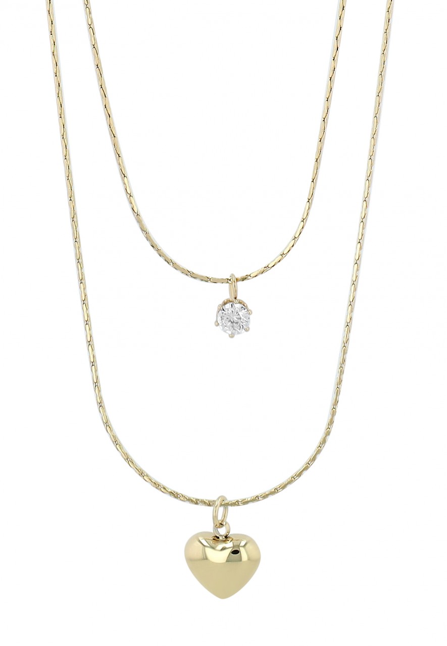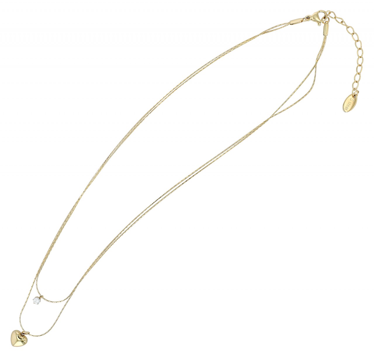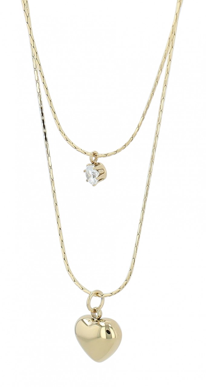Este elegante colar de aço inoxidável com duas fileiras acrescenta toques de estilo com um pingente de coração em filigrana e zircônia brilhante. Os diferentes comprimentos de corrente (38 cm e 42 cm) criam um efeito de camadas moderno que enfatiza o decote de forma elegante. Graças à extensão de 5 cm de comprimento, a corrente pode ser ajustada individualmente e combinada de diversas maneiras – seja como um destaque romântico ou como uma peça moderna e marcante. Seu design atemporal o torna o companheiro perfeito para qualquer ocasião.
