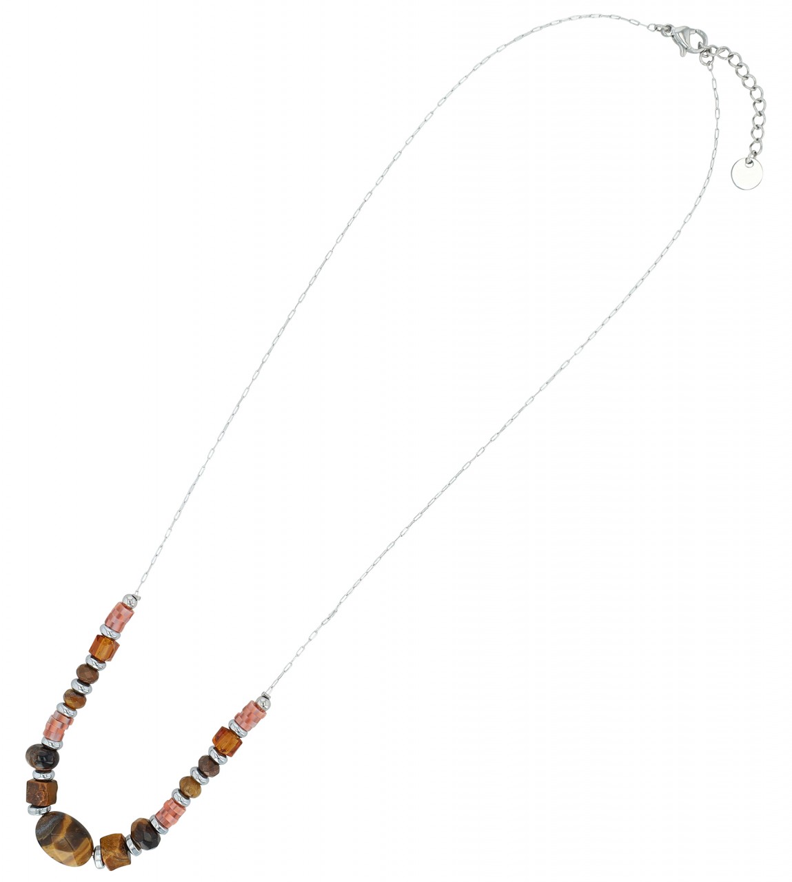 Akzent® Colar em Aço Inoxidável com Pedras Naturais Castanhas 0619